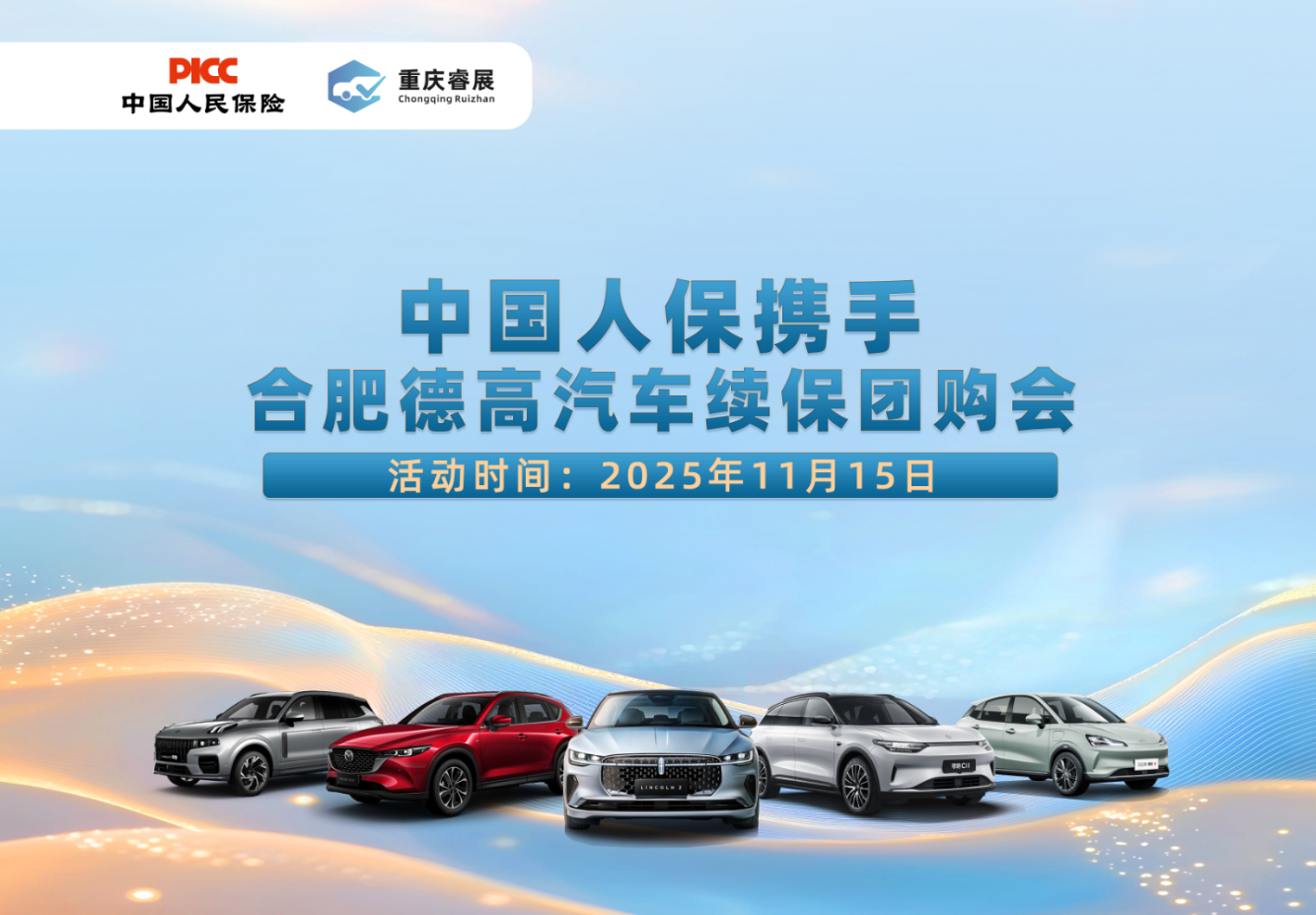 潮酷座驾集结,焕新出行盛宴,中国人保携手合肥德高汽车将于2025年11月15日,8:00-17:00在合肥市蜀山区潜山北路(加气站南侧)携多款时尚动感、智能前沿、性能卓越的车型惊艳亮相,多元车型兼具强劲动力与精致质感,满足家用通勤、潮流炸街、高端商务等多元出行需求。
