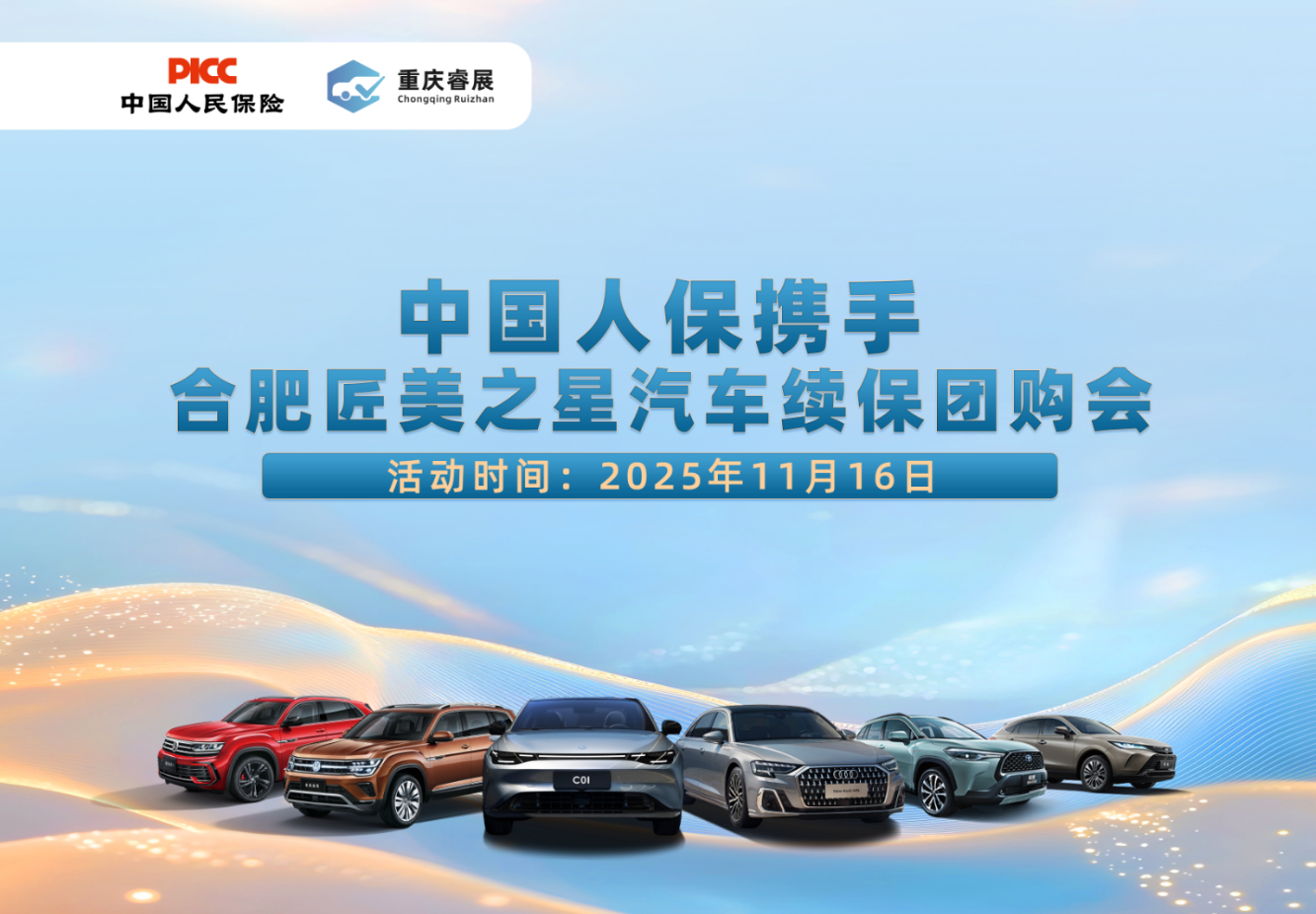 潮酷座驾集结,焕新出行盛宴,中国人保携手合肥匠美之星汽车将于2025年11月16日,8:00-17:00在合肥市包河经济开发区延安路28号携多款时尚动感、智能前沿、性能卓越的车型惊艳亮相,多元车型兼具强劲动力与精致质感,满足家用通勤、潮流炸街、高端商务等多元出行需求。