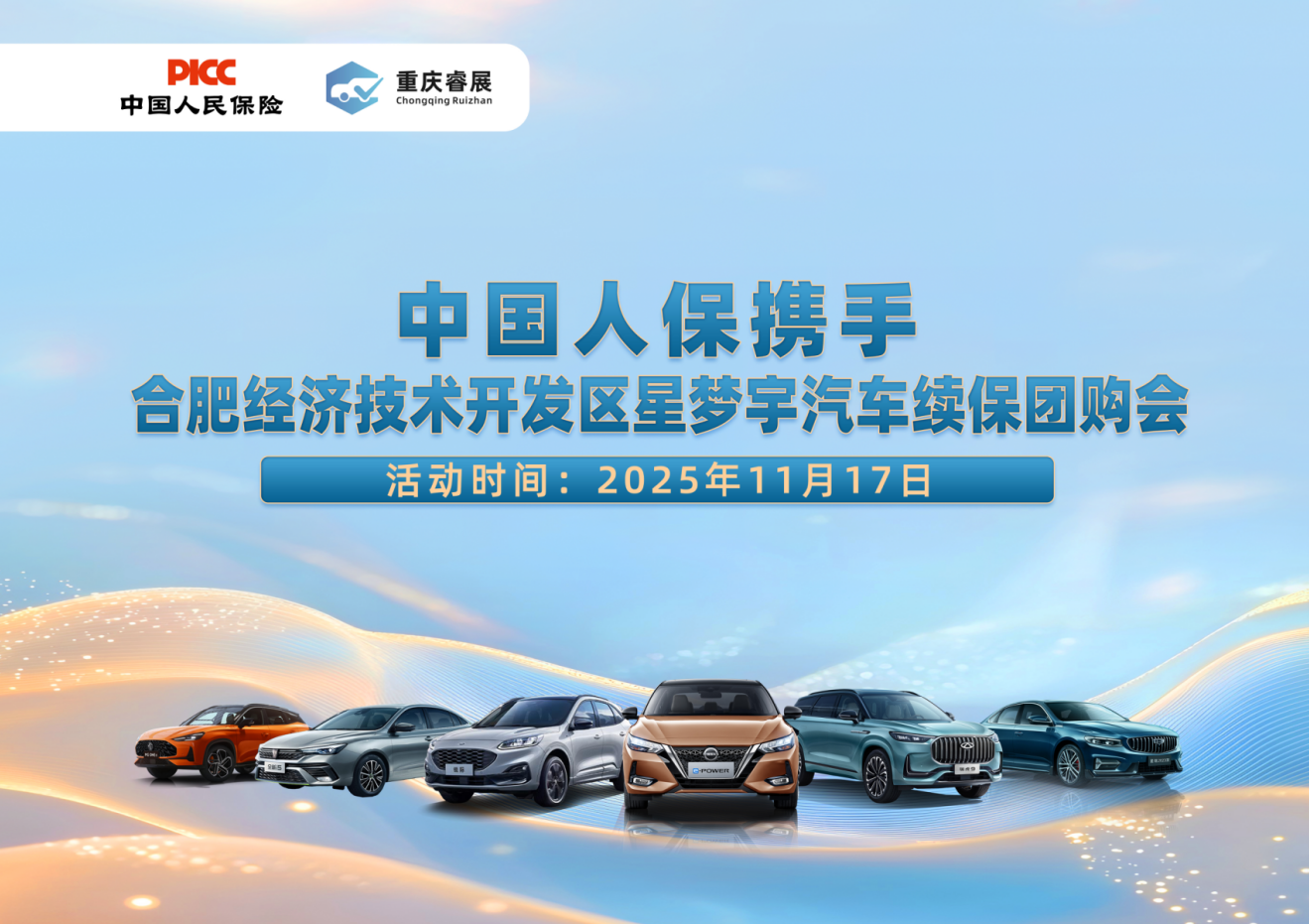 潮酷座驾集结,焕新出行盛宴,中国人保携手合肥经济技术开发区星梦宇汽车装潢将于2025年11月17日,8:00-17:00在安徽省合肥经济技术开发区翡翠路翡翠花园社服楼133室携多款时尚动感、智能前沿、性能卓越的车型惊艳亮相,多元车型兼具强劲动力与精致质感,满足家用通勤、潮流炸街、高端商务等多元出行需求。